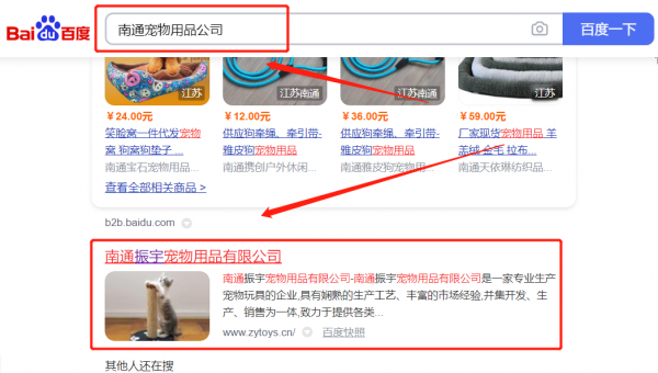 南通振*寵物用品有限公司網(wǎng)站排名排名效果展示