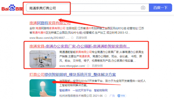 南通*乾智能家具有限公司關(guān)鍵詞推廣排名效果展示