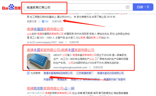 南通*盛家居有限公司關(guān)鍵詞推廣快上詞效果展示