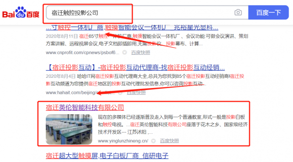 我們公司與宿遷英*智能科技有限公司合作中,對(duì)這個(gè)公司所經(jīng)營(yíng)的觸控投影這個(gè)行業(yè)提供了SEO優(yōu)化,與該公司的合作,更多的客戶(hù)讓我們公司為其提供關(guān)鍵詞搜索排名,通過(guò)每一次合作,我們公司不斷完善自己,同時(shí)希望合作伙伴在經(jīng)營(yíng)的路上越來(lái)越好。