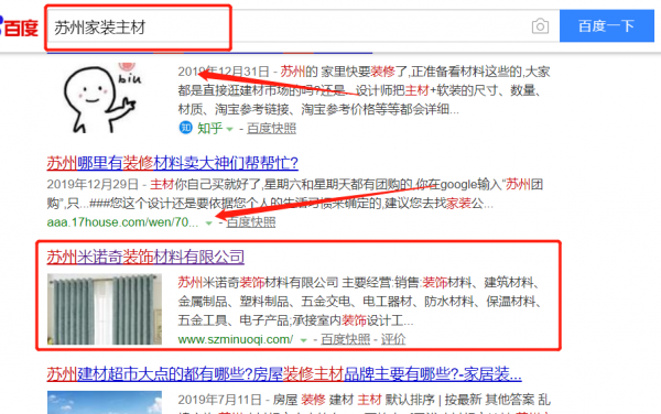 我們公司與蘇州米諾奇裝飾材料有限公司合作中,對(duì)這個(gè)公司所經(jīng)營(yíng)的家裝主材這個(gè)行業(yè)提供了關(guān)鍵詞搜索排名,與該公司的合作,更多的客戶讓我們公司為其提供關(guān)鍵詞搜索排名,通過每一次合作,我們公司不斷完善自己,同時(shí)希望合作伙伴在經(jīng)營(yíng)的路上越來越好。