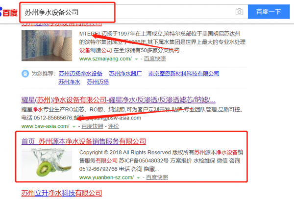 蘇州源本凈水設(shè)備銷售服務(wù)有限公司與本司簽約百度快照排名協(xié)議