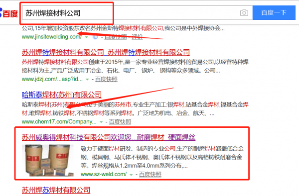 蘇州威奧得焊材科技有限公司選用我司企業(yè)焊接材料的網(wǎng)站優(yōu)化產(chǎn)品,其SEO關(guān)鍵詞有焊接材料。采用全球領(lǐng)先的關(guān)鍵詞三維云計算系統(tǒng),智能關(guān)鍵詞報價查詢,徹底杜絕高價、朦朧價。自助提交優(yōu)化任務(wù),自由設(shè)定指定關(guān)鍵詞,指定排名位置,避免傳統(tǒng)銷售誘導(dǎo)。蘇州威奧得焊材科技有限公司成立于2002年,是經(jīng)蘇州市市場監(jiān)督管理局審核的有資質(zhì)的公司,其統(tǒng)一社會信用代碼:913205850566369645。公司地址:江蘇省蘇州市太倉經(jīng)濟(jì)開發(fā)區(qū)浮橋鎮(zhèn)富橋路1號B廠房。
