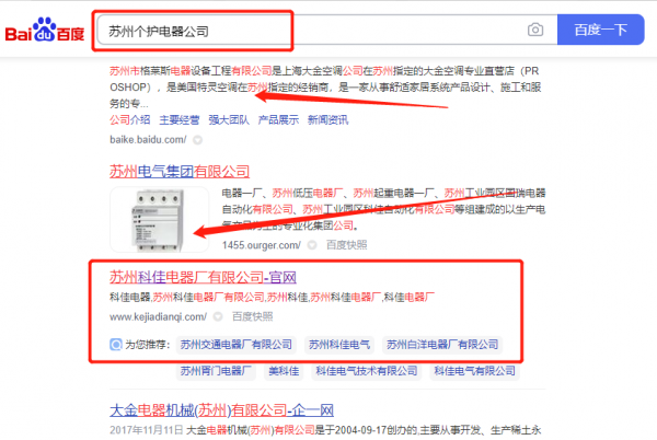 蘇州科*電器廠有限公司公司網(wǎng)站推廣最快上詞效果展示