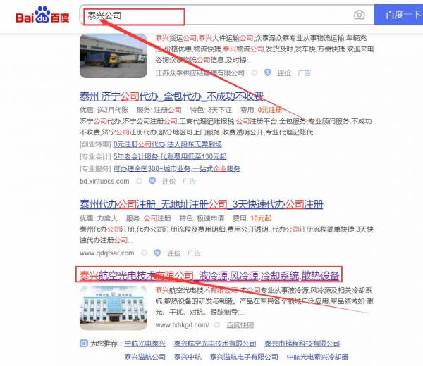 泰興航*光電技術(shù)有限公司網(wǎng)站排名到首頁無排名不收費(fèi)