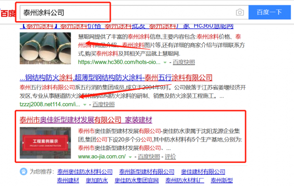 我們公司與泰州市奧佳新型建材發(fā)展有限公司合作中,對(duì)這個(gè)公司所經(jīng)營(yíng)的涂料這個(gè)行業(yè)提供了SEO推廣,與該公司的合作,更多的客戶讓我們公司為其提供SEO推廣,通過(guò)每一次合作,我們公司不斷完善自己,同時(shí)希望合作伙伴在經(jīng)營(yíng)的路上越來(lái)越好。