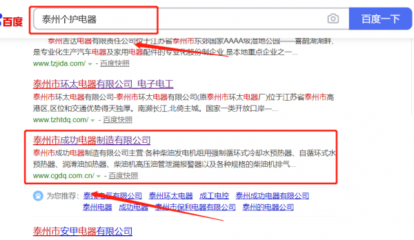 泰州市*功電器制造有限公司百度關(guān)鍵詞排名到首頁無排名不收費