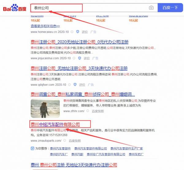泰州*銘汽車配件有限公司關鍵詞推廣最快上詞效果展示