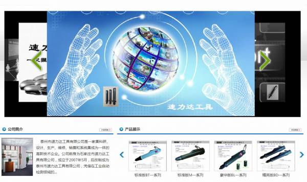 泰州市*力達(dá)工具有限公司選用我司企業(yè)機(jī)電設(shè)備行業(yè)的網(wǎng)站優(yōu)化產(chǎn)品,其SEO關(guān)鍵詞有 電動(dòng)工具,氣動(dòng)工具,防靜電,電動(dòng)螺絲批,電子設(shè)備,五金產(chǎn)品,氣動(dòng)螺絲批。其特點(diǎn)是用很合適的展示方式、展示效果、站點(diǎn)框架,把客戶及其用戶很關(guān)心的問(wèn)題突出表現(xiàn);并以簡(jiǎn)潔明朗的設(shè)計(jì)風(fēng)格,清晰展現(xiàn)公司水平實(shí)力,確保一秒抓住目標(biāo)用戶眼球,給用戶留下良好的第一印象。泰州市*力達(dá)工具有限公司成立于2015年,是經(jīng)泰州市市場(chǎng)監(jiān)督管理局審核的有資質(zhì)的公司,其統(tǒng)一社會(huì)信用代碼: 91321204MA1M**TL63。公司地址:泰州市姜堰區(qū)羅塘街道益民路40號(hào)。