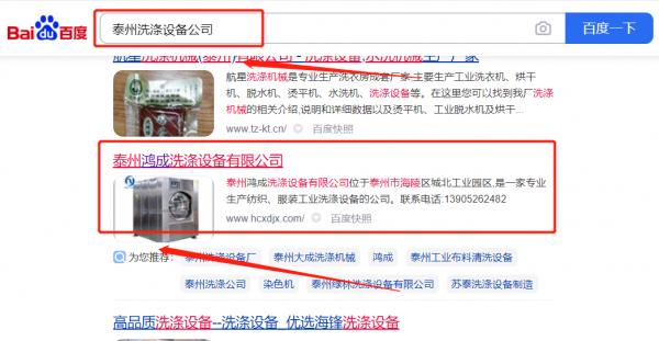 泰州鴻*洗滌設(shè)備有限公司關(guān)鍵詞排名排名效果展示