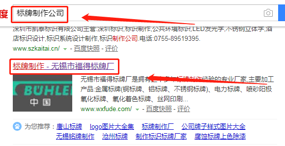 我們公司與無錫市福得標(biāo)牌廠合作中,對(duì)這個(gè)公司所經(jīng)營(yíng)的標(biāo)牌制作這個(gè)行業(yè)提供了百度快照排名,與改公司的合作,更多的客戶讓我們公司為其提供百度快照排名,通過每一次合作,我們公司不斷完善自己,同時(shí)希望合作伙伴在經(jīng)營(yíng)的路上越來越好。