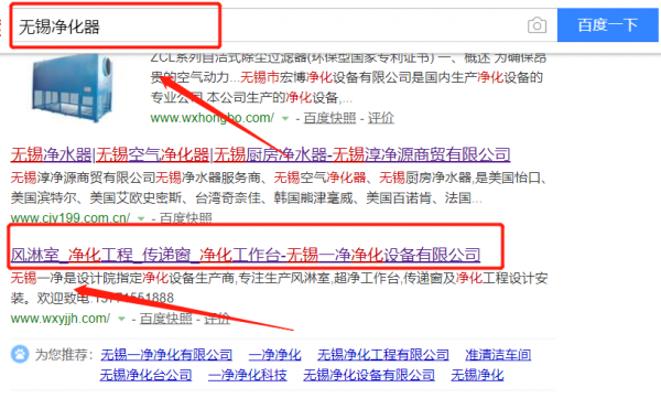 我們公司與無錫一凈凈化設備有限公司合作中,對這個公司所經營的凈化器這個行業(yè)提供了百度快照排名,與該公司的合作,更多的客戶讓我們公司為其提供百度快照排名,通過每一次合作,我們公司不斷完善自己,同時希望合作伙伴在經營的路上越來越好。
