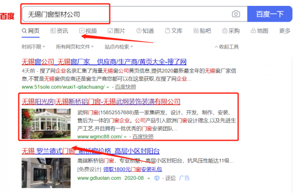 無(wú)錫市*綱裝飾裝潢有限公司選用我司企業(yè)門(mén)窗型材的網(wǎng)站優(yōu)化產(chǎn)品,其SEO關(guān)鍵詞有門(mén)窗型材。搶占百度、360搜索、搜狗等搜索引擎首頁(yè)自然排名(PC端 + 手機(jī)端),高客流量導(dǎo)入,SEO推廣效果更突出。無(wú)錫市*綱裝飾裝潢有限公司成立于2010年,是經(jīng)無(wú)錫市市場(chǎng)監(jiān)督管理局審核的有資質(zhì)的公司,其統(tǒng)一社會(huì)信用代碼:91320203**5837074R。公司地址:江蘇省無(wú)錫市南長(zhǎng)區(qū)金城大橋東堍沁園新村531號(hào)(1-23)。