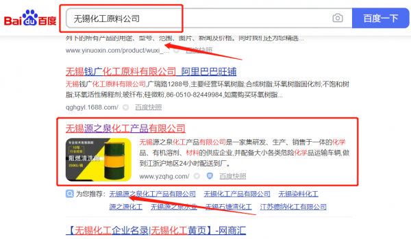 無(wú)錫*之泉化工產(chǎn)品有限公司優(yōu)化排名最快上詞效果展示