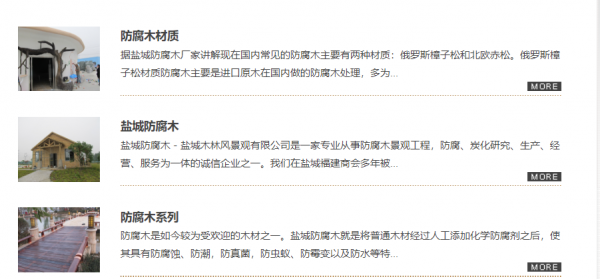 鹽城防腐木-鹽城木林風景觀有限公司是一家專業(yè)從事防腐木景觀工程,防腐、炭化研究、生產、經營、服務為一體的誠信企業(yè)之一。我們在鹽城福建商會多年被評為理事單位,長期以來一直受到廣大新老用戶的支持和認可。本公司坐落于鹽城市亭湖區(qū)新興加油站向北300米(斯柯達4S店旁)。木林風目前主要業(yè)務和生產有樟子松、落葉松、白松、南方松、花旗松、柳桉、波羅格等各種木材的防腐浸漬、炭化、阻燃、防蟻等處理。我們還配有專業(yè)的安裝隊伍一條龍服務,并與各大型園林景觀工程公司、房地產公司及業(yè)內同仁建立了良好合作關系。“質量是生命、信譽是效益”,我們誠邀社會各界開展廣泛、互惠的合作!