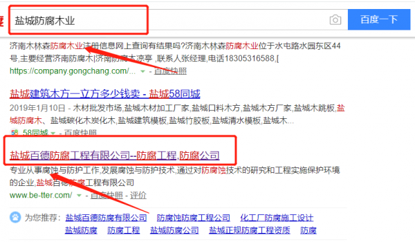 我們公司與鹽城百德防腐工程有限公司合作中,對這個(gè)公司所經(jīng)營的防腐木業(yè)這個(gè)行業(yè)提供了關(guān)鍵詞搜索排名,與該公司的合作,更多的客戶讓我們公司為其提供關(guān)鍵詞搜索排名,通過每一次合作,我們公司不斷完善自己,同時(shí)希望合作伙伴在經(jīng)營的路上越來越好。