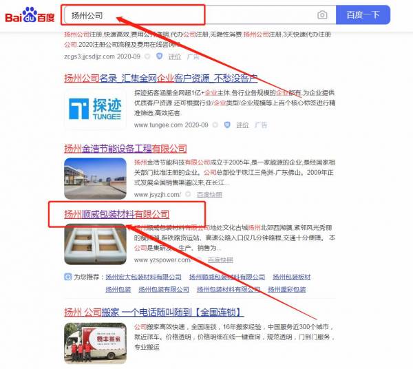 揚州*威包裝材料有限公司百度關鍵詞排名最快上詞效果展示