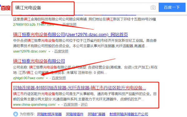 我們公司與鎮(zhèn)江市丹徒區(qū)乾升光電設(shè)備有限公司合作中,對這個公司所經(jīng)營的光電設(shè)備這個行業(yè)提供了快速排名,與該公司的合作,更多的客戶讓我們公司為其提供快速排名,通過每一次合作,我們公司不斷完善自己,同時希望合作伙伴在經(jīng)營的路上越來越好。