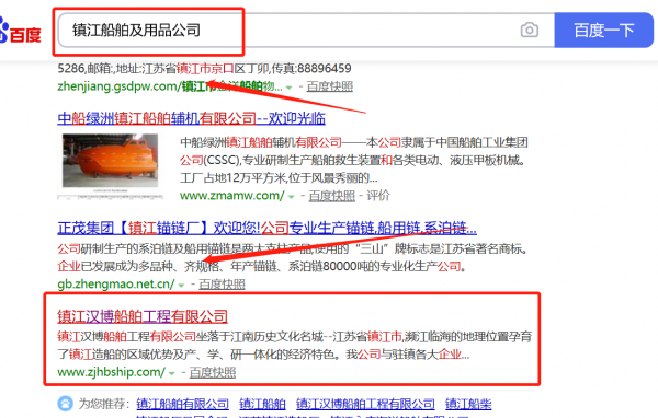 鎮(zhèn)江*博船舶工程有限公司選用我司企業(yè)船舶及用品的網(wǎng)站優(yōu)化產(chǎn)品,其SEO關(guān)鍵詞有船舶及用品。通過對搜索引擎目標(biāo)關(guān)鍵詞優(yōu)化,使目標(biāo)網(wǎng)站的相關(guān)信息顯示在百度首頁,為企業(yè)挖掘更多的潛在客戶的同時帶來海量的商機(jī)。鎮(zhèn)江*博船舶工程有限公司成立于2013年,是經(jīng)鎮(zhèn)江市市場監(jiān)督管理局審核的有資質(zhì)的公司,其統(tǒng)一社會信用代碼:91321191**9899150P。公司地址:江蘇省鎮(zhèn)江市丹徒區(qū)高資街道香山大道1號。