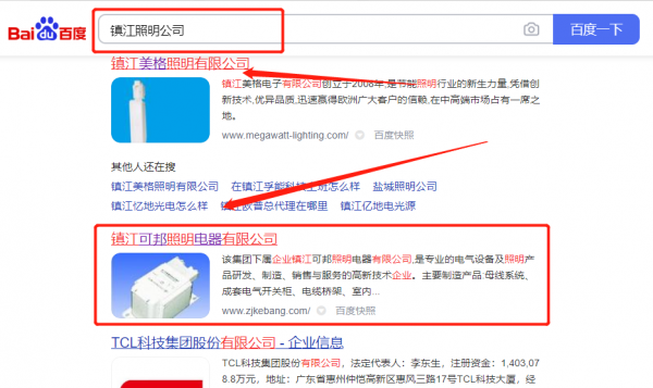 鎮(zhèn)江*邦照明電器有限公司網(wǎng)絡(luò)營銷最快上詞效果展示