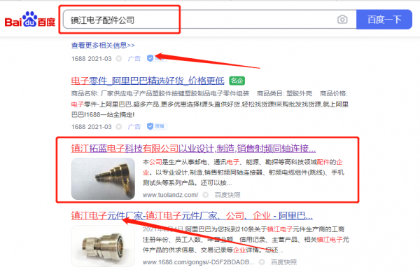 鎮(zhèn)江*藍(lán)電子科技有限公司選用我司電子配件的網(wǎng)站優(yōu)化產(chǎn)品,其SEO關(guān)鍵詞有電子配件。專注于高品質(zhì)網(wǎng)絡(luò)品牌運(yùn)營推廣服務(wù),在網(wǎng)絡(luò)中樹立企業(yè)品牌形象,提高搜索關(guān)鍵詞轉(zhuǎn)換率,以及多終端廣告展現(xiàn)!鎮(zhèn)江*藍(lán)電子科技有限公司成立于2011年,是鎮(zhèn)江市市場監(jiān)督管理局審核的有資質(zhì)的公司,其統(tǒng)一社會信用代碼:913211005**4462145。公司地址:江蘇省鎮(zhèn)江市京口區(qū)諫壁焦灣村。