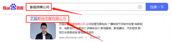 藝*影視傳媒有限公司關(guān)鍵詞搜索排名案例欣賞