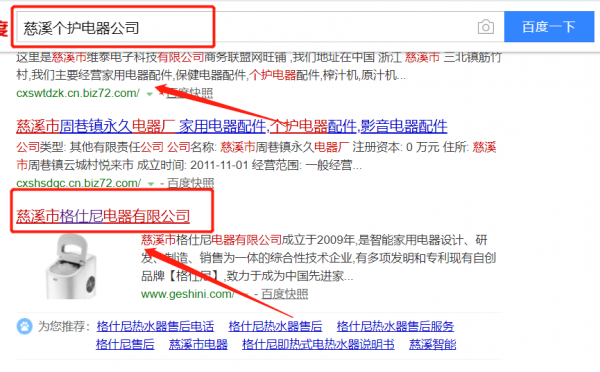 我們公司與慈溪市格仕尼電器有限公司合作中,對這個公司所經(jīng)營的個護電器這個行業(yè)提供了百度快照排名,與該公司的合作,更多的客戶讓我們公司為其提供百度快照排名,通過每一次合作,我們公司不斷完善自己,同時希望合作伙伴在經(jīng)營的路上越來越好。