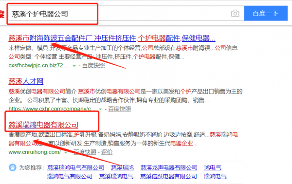 我們公司與慈溪瑞鴻電器有限公司合作中,對這個公司所經(jīng)營的個護電器這個行業(yè)提供了百度快照排名,與該公司的合作,更多的客戶讓我們公司為其提供百度快照排名,通過每一次合作,我們公司不斷完善自己,同時希望合作伙伴在經(jīng)營的路上越來越好。