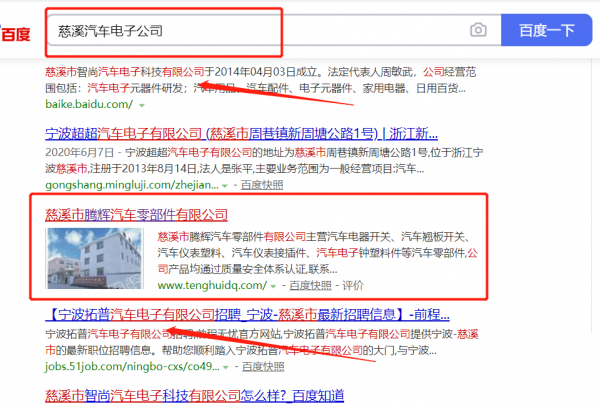 我們公司與慈溪市*輝汽車(chē)零部件有限公司合作中,對(duì)這個(gè)公司所經(jīng)營(yíng)的汽車(chē)電子這個(gè)行業(yè)提供了百度快照排名,與該公司的合作,更多的客戶讓我們公司為其提供百度快照排名,通過(guò)每一次合作,我們公司不斷完善自己,同時(shí)希望合作伙伴在經(jīng)營(yíng)的路上越來(lái)越好。