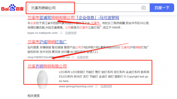 蘭溪市齊*照明電器有限公司網(wǎng)站SEO優(yōu)化最快上詞效果展示