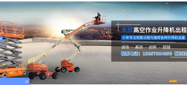 金華大*機(jī)械設(shè)備租賃有限公司:專業(yè)銷售、出租、維修、各種升降機(jī)(剪叉式、曲臂式、直臂式)。為您提供6米到43米高空作業(yè)平臺(tái)。自行式升降機(jī)具有高效安全,操作方便實(shí)用,可為您大大節(jié)約人工成本,縮短工期。適用場(chǎng)所:工廠廠房、鐵路、車站、公路、橋梁、機(jī)場(chǎng)、石油、電力、大廳、賓館、會(huì)堂、裝飾、市政管理、樹木檢修、電氣線路、化工、醫(yī)藥、航天、部隊(duì)、核電、攝影、消防、體育館、小區(qū)物業(yè)、建筑場(chǎng)景布置、慕墻玻璃清洗等。大欣機(jī)械以“擔(dān)大任、行大道、成大器”為核心價(jià)值觀,注重大欣特色的企業(yè)文化建設(shè),不斷深化工作,勇于承擔(dān)社會(huì)責(zé)任...
