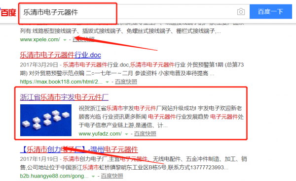 我們公司與浙江省樂清市宇發(fā)電子元件廠合作中,對這個公司所經(jīng)營的電子元器件這個行業(yè)提供了百度快照排名,與該公司的合作,更多的客戶讓我們公司為其提供百度快照排名,通過每一次合作,我們公司不斷完善自己,同時希望合作伙伴在經(jīng)營的路上越來越好。
