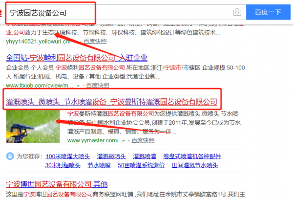 我們公司與寧波市曼斯特灌溉園藝設(shè)備有限公司合作中,對這個公司所經(jīng)營的園藝設(shè)備這個行業(yè)提供了快速排名,與該公司的合作,更多的客戶讓我們公司為其提供快速排名,通過每一次合作,我們公司不斷完善自己,同時希望合作伙伴在經(jīng)營的路上越來越好。