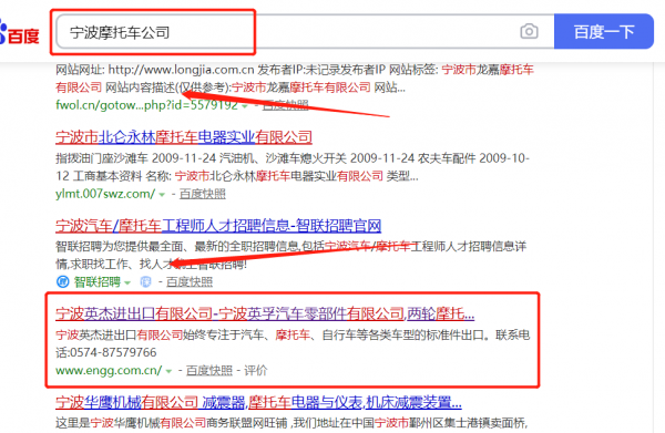 我們公司與寧波*杰進(jìn)出口有限公司合作中,對這個公司所經(jīng)營的摩托車這個行業(yè)提供了百度快照排名,與該公司的合作,更多的客戶讓我們公司為其提供百度快照排名,通過每一次合作,我們公司不斷完善自己,同時希望合作伙伴在經(jīng)營的路上越來越好。