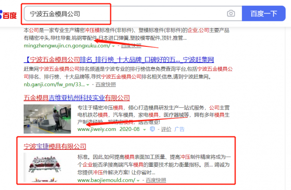 寧波*捷模具有限公司選用我司企業(yè)暖通給排水的網(wǎng)站優(yōu)化產(chǎn)品,其SEO關(guān)鍵詞有暖通給排水。一對(duì)一定制服務(wù),產(chǎn)品經(jīng)理在線支持,無憂售后,適用于各個(gè)企業(yè),提供一站式網(wǎng)絡(luò)營銷服務(wù)。百度搜索引擎優(yōu)化,提升品牌關(guān)鍵詞的正面內(nèi)容信息展現(xiàn),體現(xiàn)良好的口碑宣傳。寧波*捷模具有限公司成立于2011年,是經(jīng)寧波市市場監(jiān)督管理局審核的有資質(zhì)的公司,其統(tǒng)一社會(huì)信用代碼:91330212**9458607G。公司地址:浙江省寧波市鄞州區(qū)東吳鎮(zhèn)東村。