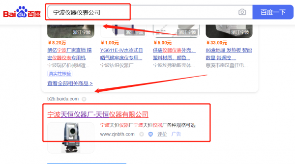 寧波天*儀器廠關鍵詞推廣最快上詞效果展示