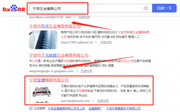 寧波*捷模具有限公司網(wǎng)站推廣排名效果展示