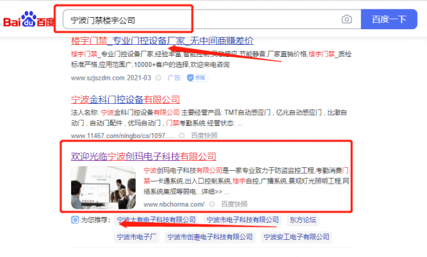 我們公司與寧波創(chuàng)*電子科技有限公司合作中,對這個公司所經(jīng)營的門禁樓宇這個行業(yè)提供了網(wǎng)絡(luò)營銷,與該公司的合作,更多的客戶讓我們公司為其提供關(guān)鍵詞搜索排名,通過每一次合作,我們公司不斷完善自己,同時希望合作伙伴在經(jīng)營的路上越來越好。