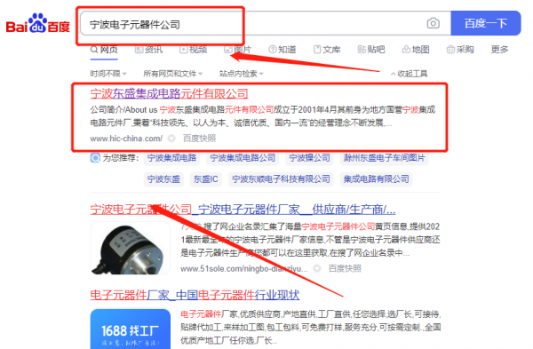 寧波東*集成電路元件有限公司萬詞霸屏排名案例欣賞