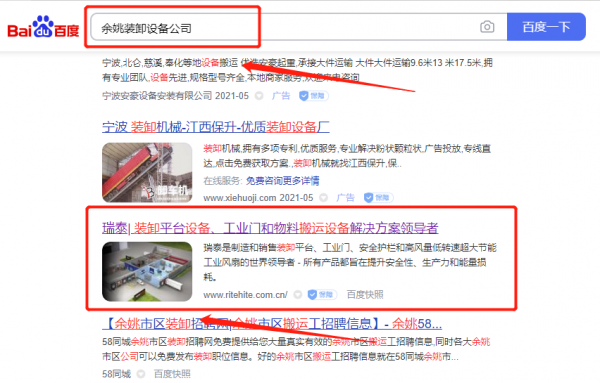 我們公司與浙江瑞*包裝機械有限公司合作中,對這個公司所經(jīng)營的裝卸設備這個行業(yè)提供了SEO,與該公司的合作,更多的客戶讓我們公司為其提供關(guān)鍵詞搜索排名,通過每一次合作,我們公司不斷完善自己,同時希望合作伙伴在經(jīng)營的路上越來越好。