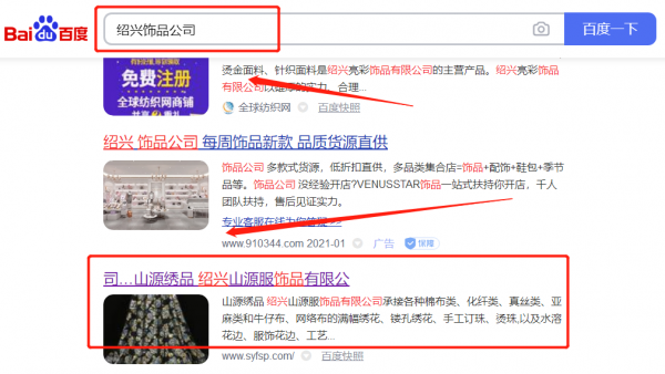 紹興山*服飾品有限公司關(guān)鍵詞排名保證在首頁效果