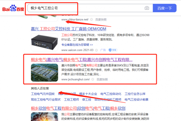 我們公司與嘉興市創(chuàng)*電氣工程有限公司合作中,對(duì)這個(gè)公司所經(jīng)營的電氣工控這個(gè)行業(yè)提供了百度關(guān)鍵詞排名,與該公司的合作,更多的客戶讓我們公司為其提供百度快照排名,通過每一次合作,我們公司不斷完善自己,同時(shí)希望合作伙伴在經(jīng)營的路上越來越好。