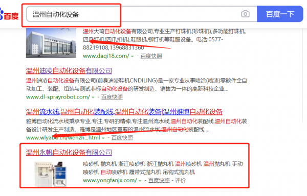 我們公司與溫州*帆自動(dòng)化設(shè)備有限公司合作中,對(duì)這個(gè)公司所經(jīng)營的自動(dòng)化設(shè)備這個(gè)行業(yè)提供了百度快照排名,與該公司的合作,更多的客戶讓我們公司為其提供百度快照排名,通過每一次合作,我們公司不斷完善自己,同時(shí)希望合作伙伴在經(jīng)營的路上越來越好。