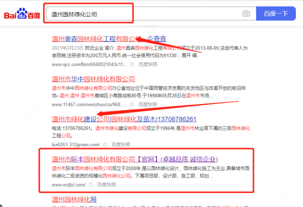 溫州市際*園林綠化有限公司選用我司企業(yè)園林綠化的網(wǎng)站優(yōu)化產(chǎn)品,其SEO關(guān)鍵詞有園林綠化。3-15天快速提升網(wǎng)站前五頁關(guān)鍵詞排名上百度首頁,幫助客戶增加流量,提高成交量,為您帶來更多潛在客戶,打造客戶品牌影響力。溫州市際*園林綠化有限公司成立于2000年,是經(jīng)溫州市市場監(jiān)督管理局審核的有資質(zhì)的公司,其統(tǒng)一社會(huì)信用代碼:91330328M**CTKY19E。公司地址:浙江省溫州市文成縣百丈漈鎮(zhèn)篁莊村。