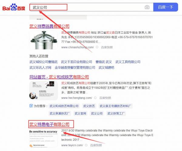 武義特*電子有限公司網(wǎng)站優(yōu)化最快上詞效果展示