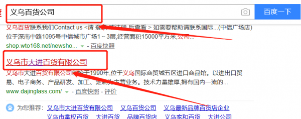 我們公司與義烏市大進百貨有限公司合作中,對這個公司所經營的百貨這個行業(yè)提供了關鍵詞搜索排名,與該公司的合作,更多的客戶讓我們公司為其提供關鍵詞搜索排名,通過每一次合作,我們公司不斷完善自己,同時希望合作伙伴在經營的路上越來越好。