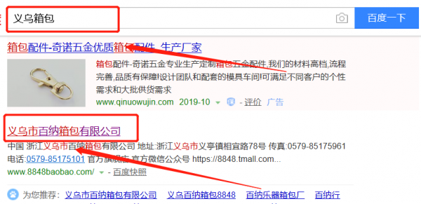 義烏市百納箱包有限公司跟本公司簽訂快速排名合同