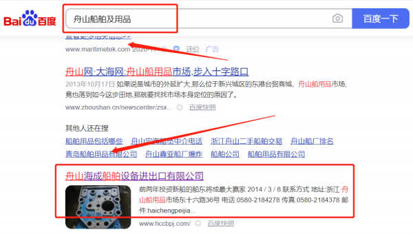 舟山海*船舶設(shè)備進(jìn)出口有限公司選用我司企業(yè)船舶及用品行業(yè)的網(wǎng)站優(yōu)化產(chǎn)品,其SEO關(guān)鍵詞有船舶及用品。通過(guò)對(duì)搜索引擎目標(biāo)關(guān)鍵詞優(yōu)化,使目標(biāo)網(wǎng)站的相關(guān)信息顯示在百度首頁(yè),為企業(yè)挖掘更多的潛在客戶的同時(shí)帶來(lái)海量的商機(jī)。舟山海*船舶設(shè)備進(jìn)出口有限公司成立于2014年,是經(jīng)舟山市市場(chǎng)監(jiān)督管理局審核的有資質(zhì)的公司,其統(tǒng)一社會(huì)信用代碼:913309010**804742K。公司地址:浙江省舟山市定海區(qū)臨城街道船用品市場(chǎng)35幢東十六路32-46號(hào)(自貿(mào)試驗(yàn)區(qū)內(nèi))。