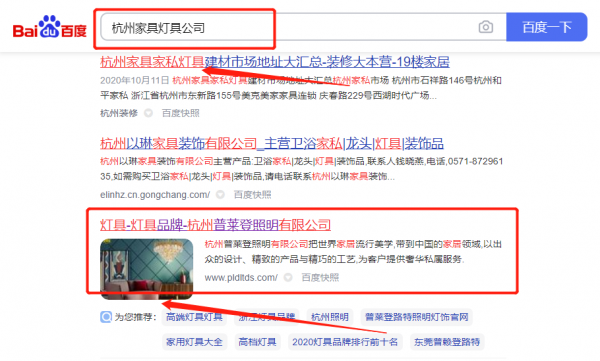 杭州普*登照明有限公司關(guān)鍵詞排名到首頁按天扣費