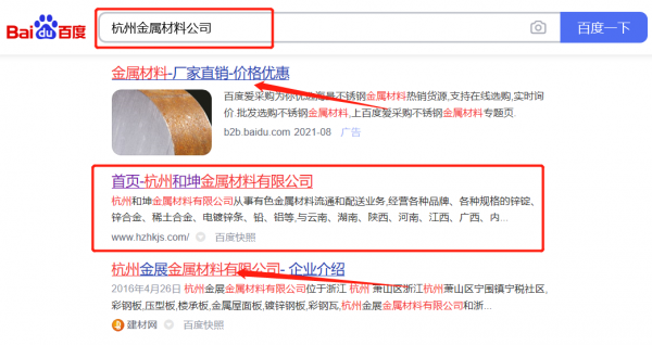 杭州*坤金屬材料有限公司百度排名保證在首頁(yè)效果